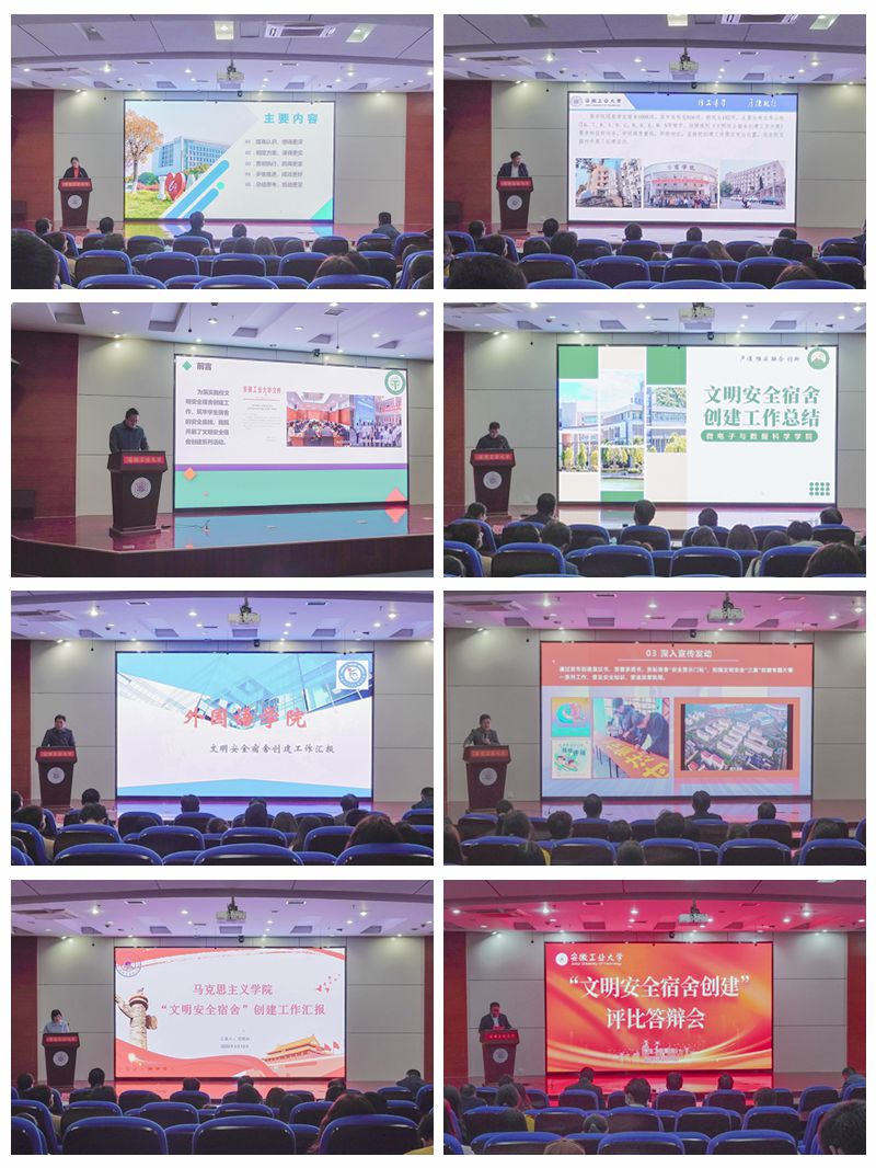 各学院围绕文明安全宿舍创建目标,结合PPT、音频、视频,对文明安全宿舍创建过程、亮点成效进行充分展示。在答辩环节,评委就制度建设、文化建设、育人成果等方面进行了深层的提问。最终,管理科学与工程学院、计算机科学与技术学院、材料科学与工程学院、能源与环境学院、马克思主义学院、建筑工程学院、电气与信息工程学院、艺术与设计学院获评“优秀组织奖”。前期,经过各学院推荐,学生工作部、后勤处遴选,共评选出130个校“文明安全宿舍标兵”,其中本科生宿舍110个,研究生宿舍20个。