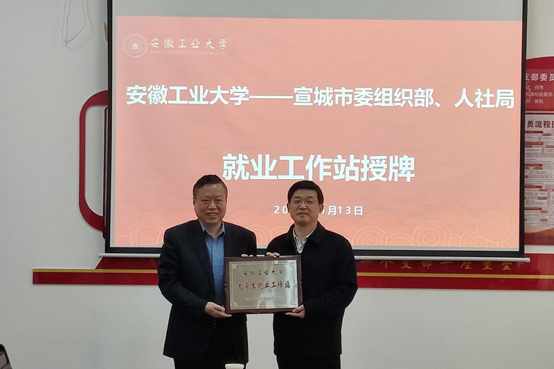 会上,祖明代表学校为宣城市人社局进行就业工作站授牌。
