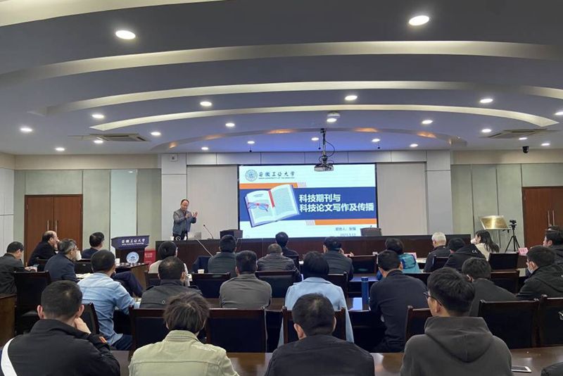 张强以“科技期刊与科技论文写作方法及传播”为题,引出科技论文对科学发展和基金申报的重要性,从科技论文写作前的准备、科技论文格式及写作方法、论文投稿的注意事项等方面介绍,分析了近年来学校在《机械工程学报》发表论文情况,探讨了提升论文传播力和影响力的方法与途径,就论文写作和投稿注意事项等方面给出了具体建议。