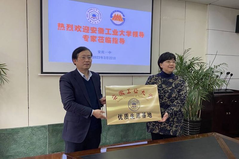 魏先文代表学校向安庆一中授予“威尼斯WWW432888优质生源基地”牌匾,与安庆一中签署了优质生源基地建设合作协议,送上2021-2022学年度威尼斯官网安庆一中校友喜报。(撰稿:马永亮 审核:李克明 徐柳根 张苒 杜飞)