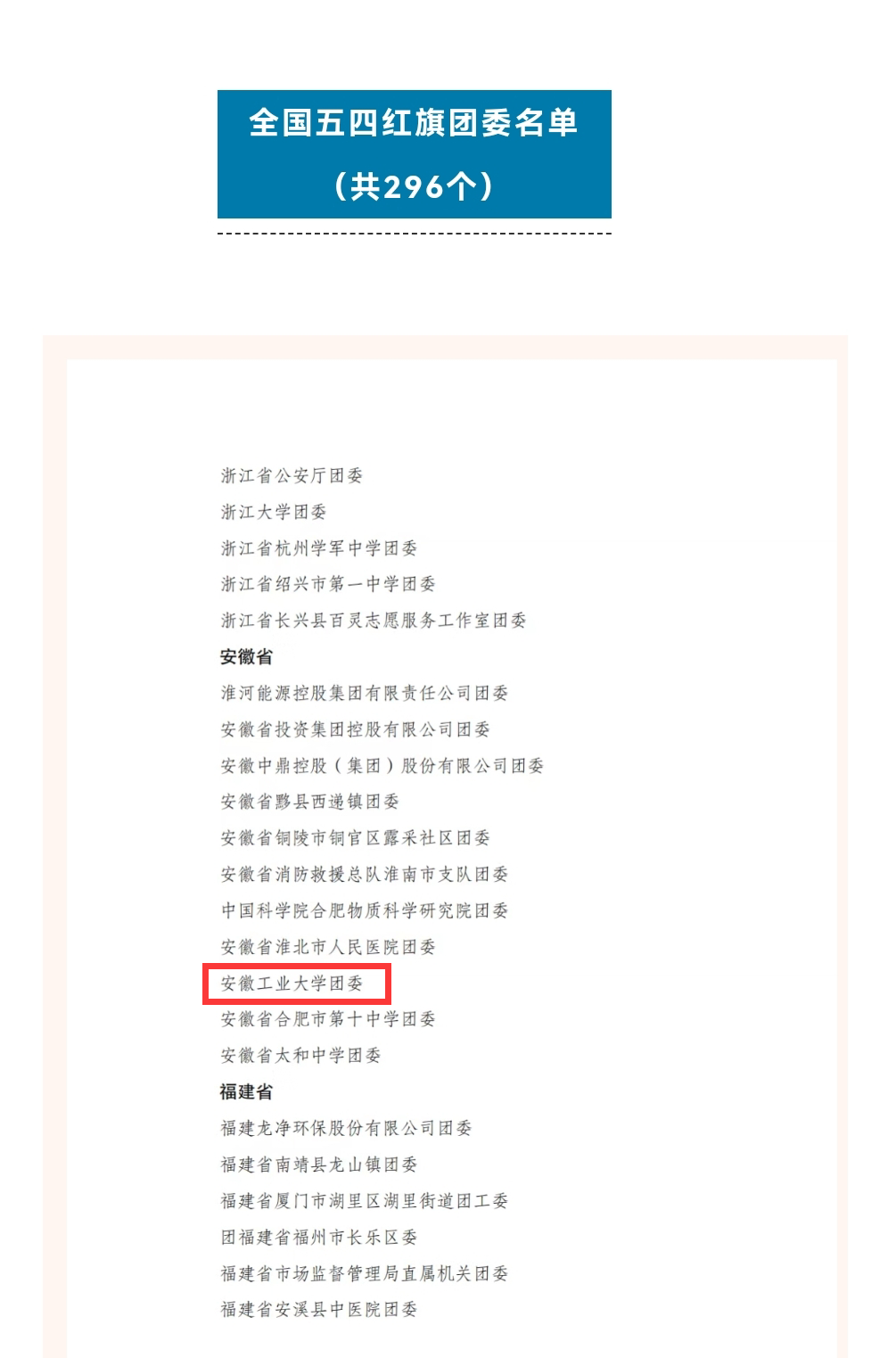 近年来,在校党委与团省委的坚强领导和关心指导下,校团委深入贯彻落实习近平总书记关于青年工作的重要思想,在思想引领、基层组织建设、社会实践、校园文化、服务青年就业创业等方面成绩突出,着力提升共青团的组织力、引领力、服务力和服务大局的贡献度。学校先后获批全国高校共青团新媒体重点工作室、团中央首批“第二课堂成绩单”试点高校,先后获评全国无偿献血促进奖、全国大学生志愿服务西部计划绩效考核优秀项目办、全国大中专学生暑期“三下乡”社会实践活动优秀单位、全国“挑战杯”优胜杯、安徽省五四红旗团委、安徽省青年志愿服务大赛“优秀组织奖”等。