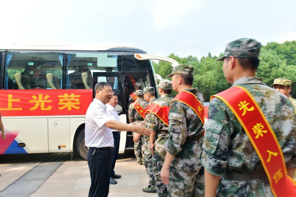 王俊介绍了威尼斯官网2025年征兵工作的总体情况。36名预定新兵肩披“光荣入伍”绶带,与会领导为他们佩戴“光荣花”。预定新兵们满载全校师生的祝福与期望,步伐铿锵、意志坚定,有序登车启程。两名迷彩宣讲团学生高擎“欢送新兵”横幅昂扬前导,锣鼓声、欢呼声、掌声久久回荡。
