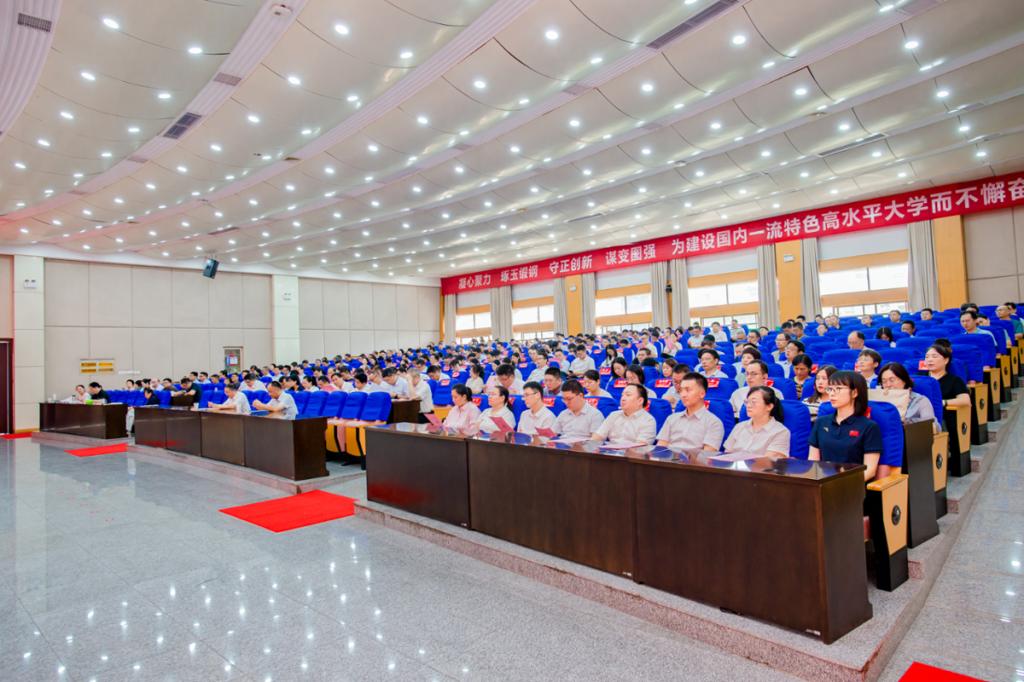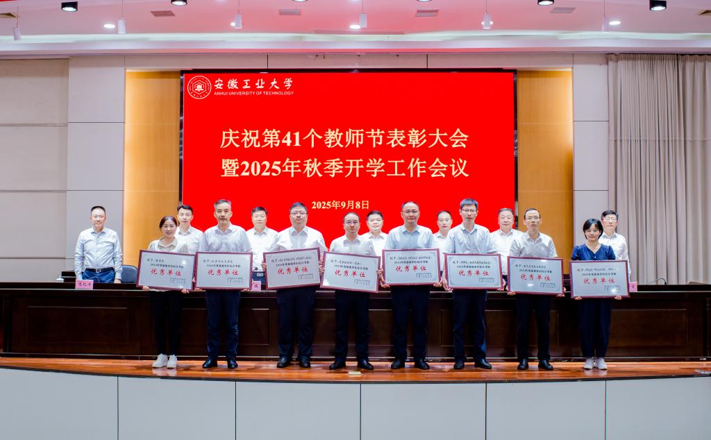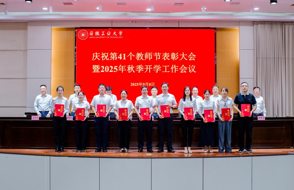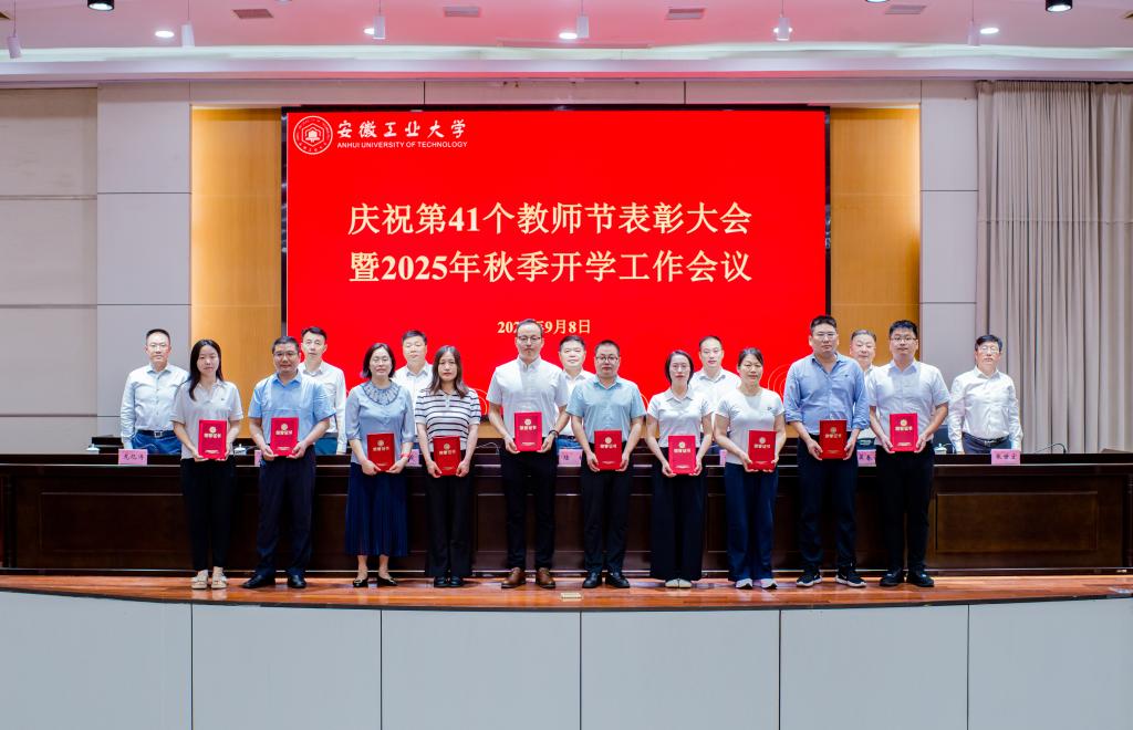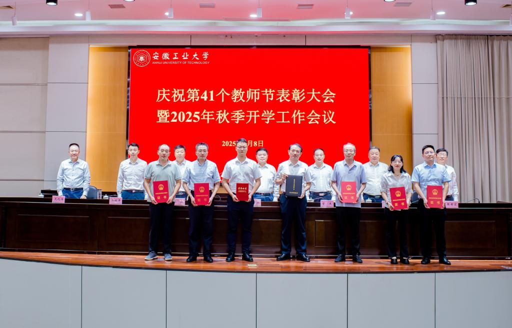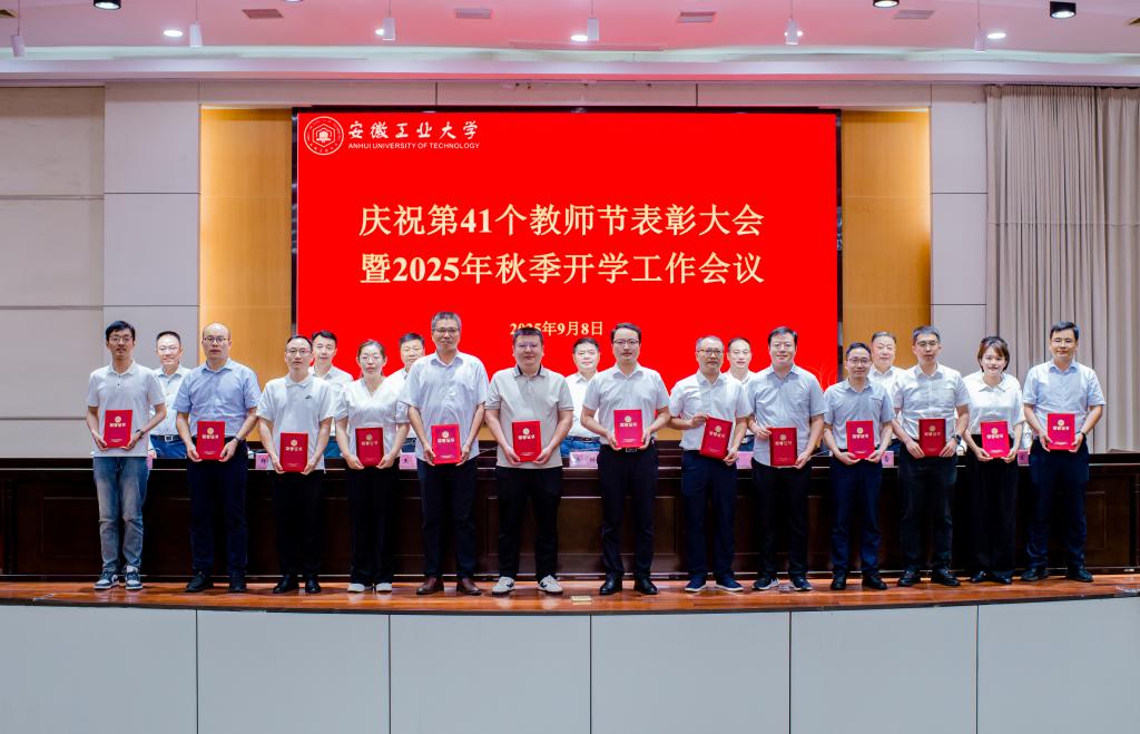 9月8日下午,学校召开庆祝第41个教师节表彰大会暨2025年秋季开学工作会议,对获得国家级、省部级、校级等荣誉称号的先进集体、先进个人及荣休教师进行表彰,总结上半年工作,研究部署本学期重点工作。全体在校党政领导、党委常委、中层干部、省级以上人大代表和政协委员、教代会执委、教师代表、受表彰人员及荣休教师代表参加会议。会议由校党委副书记王俊主持。