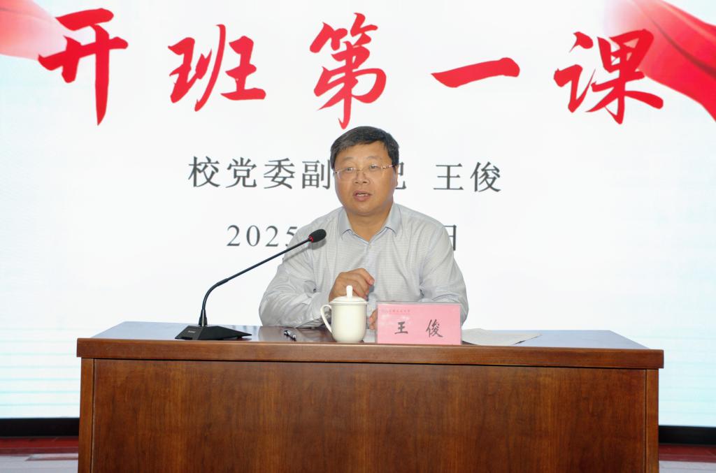 9月29日下午,校党委副书记王俊为2025级校“青马工程”全体学员讲授开班第一课。校团委负责人、“青马工程”班主任以及2025级“青马工程”全体学员现场聆听。
