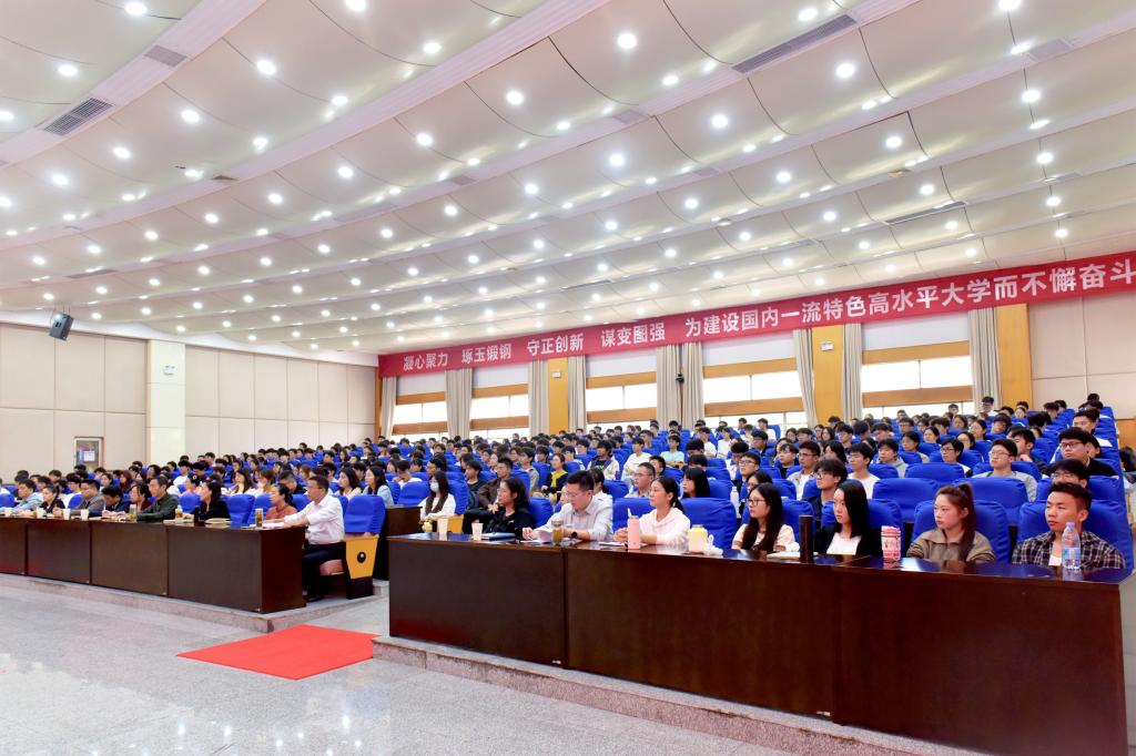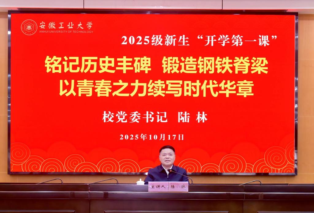 10月17日上午,校党委书记陆林以“铭记历史丰碑,锻造钢铁脊梁,以青春之力续写时代华章”为题,为2025级本科生、研究生讲授“开学第一课”。学生工作部、研究生工作部负责人,各学院党委副书记、副院长,新生辅导员、新生代表共300余人聆听了报告。