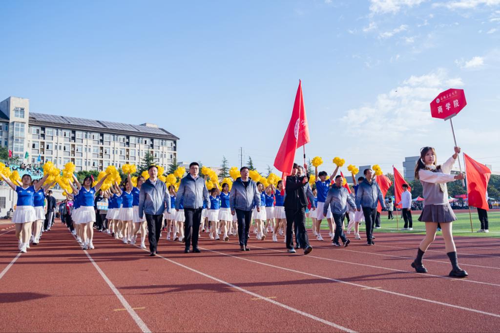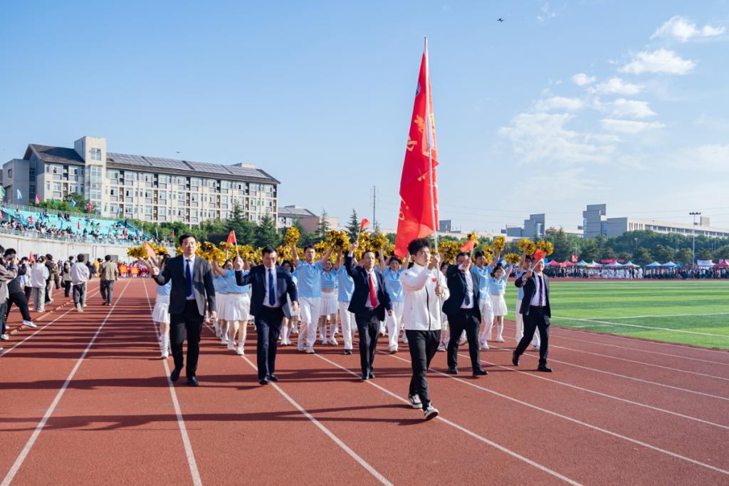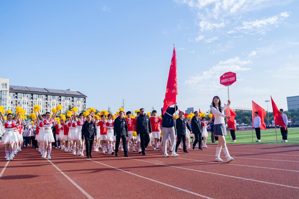 副校长、校田径运动会组委会主任郑啸致开幕辞,他代表校党委、行政和运动会组委会,向参加运动会的师生员工和全体运动员、裁判员、工作人员致以诚挚问候,对本届运动会的顺利召开表示热烈祝贺。他指出,学校体育是体育强国建设的重要抓手,是青年学子锻造强健体魄、涵养阳光心态、塑造健全人格的坚实支撑。第五次党代会科学描绘了学校未来高质量发展的“三步走”战略蓝图,体育工作正紧密围绕党代会确立的目标,不断深化体育教学改革,丰富群体活动内涵,提升竞技体育水平。期待本次运动会是一场激荡青春、迸发活力的盛会,是一场彰显公平、守护规则的盛会,是一场流淌温情、传播文明的盛会。