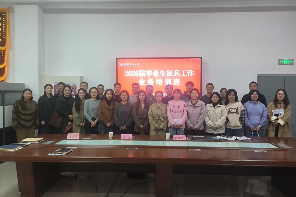10月29日下午,学校举办2026届毕业生征兵工作业务培训班。校党委副书记、征兵工作站站长王俊,花山区人武部上校政治委员徐学顿出席开班仪式。学生工作部(大学生就业创业指导中心)、研究生工作部、武装部、教务处、后勤处等部门负责人,各学院分管学生工作副书记以及全体2026届毕业班辅导员参加活动。