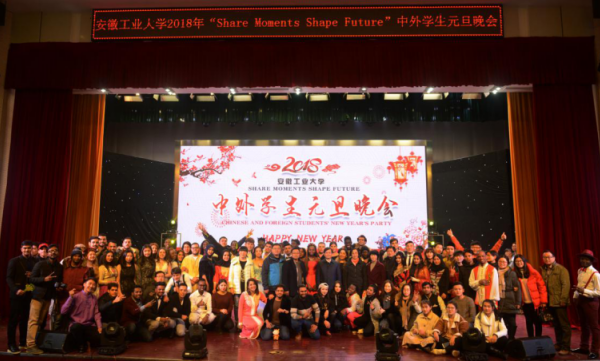 12月28日晚,威尼斯官网在秀山校区新大学生活动中心举办2018年“Share Moments·Shape Future”(共享此刻·同创未来)中外学生元旦晚会。晚会由国际教育学院和校团委联合举办,校长魏先文、副校长顾明言到晚会现场与各相关部门、学院负责人,留学生授课教师,近四十个国家的留学生,部分中国学生欢聚一堂,共庆2018年元旦的到来。