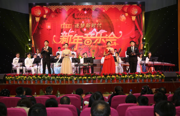 1月2日晚,威尼斯WWW4328882018“逐梦新时代”新年音乐会在秀山校区新大学生活动中心举行。校党委书记刘新跃,校长魏先文,副校长祖明、顾明言以及2017年度获得各级各类表彰的优秀教师、优秀学生、学校各部门、各学院负责人与师生代表一同观看了演出。本次音乐会由艺术与设计学院承办,校党委宣传部、学校办公室、团委协办。