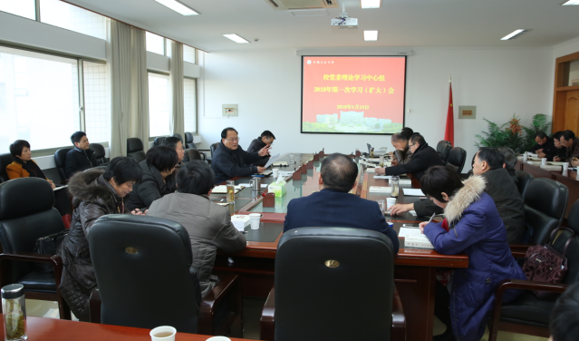 1月15日上午,校党委理论学习中心组召开2018年第一次学习(扩大)会,校党委中心组成员,党委委员、纪委委员,各基层党委(党总支、直属党支部)书记和保卫处、教务处、财务处、资产处、基建办、工商学院负责人参加了会议。校党委书记刘新跃主持会议。
