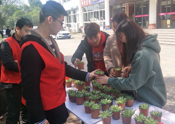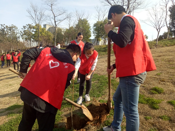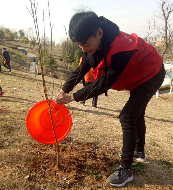 3月11日,材料科学与工程学院的志愿者们在霍里山开展植树活动,在植树现场,处处是志愿者们忙碌的身影,大家有的挥锹铲土、有的扶树盖土、有的踏实浇水,道道工序都一丝不苟、认真细致。一番热火朝天的劳动后,一棵棵新栽的苗木生意盎然,为荒凉的山坡添上了一抹新绿。3月12日,化学与化工学院的志愿者们在佳山校区三餐厅广场开展“绿色领养,见证成长”活动。同学们用废旧饮料瓶交换多肉植物,鼓励同学动手培育种植植物,在养育植物的过程中体会到乐趣,感受到生命成长的意义见证植物的成长过程,同时也增强了爱护花草树木和绿色环保的意识。建筑工程学院青年志愿者协会与绿色驿站联合开展校园环保宣传和植树活动。机械工程学院的志愿者们利用手机APP,通过徒步的健康环保方式获取绿色能量,在支付宝蚂蚁森林上合种树苗。