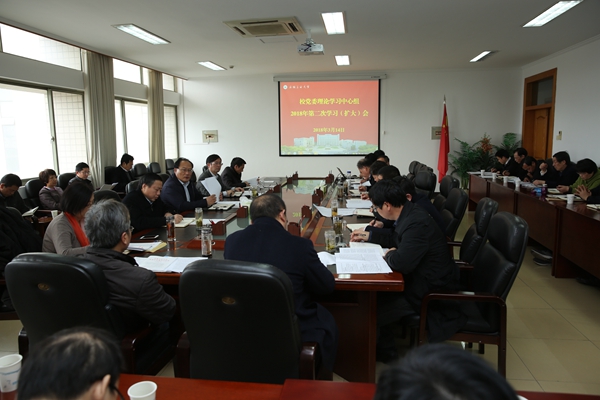 3月14日下午,校党委理论学习中心组召开2018年第二次学习(扩大)会,传达学习党的十九届二中全会、三中全会精神和全省组织部长、宣传部长、统战部长会议精神以及省纪委十届三次全会精神,深入学习贯彻《中共中央关于深化党和国家机构改革的决定》和《中共中央国务院关于全面深化新时代教师队伍建设改革的意见》的精神。校党委中心组成员,党委委员、纪委委员,各基层党委(党总支、直属党支部)书记和保卫处、资产处、基建办、工商学院负责人参加了会议。校党委书记刘新跃主持会议。