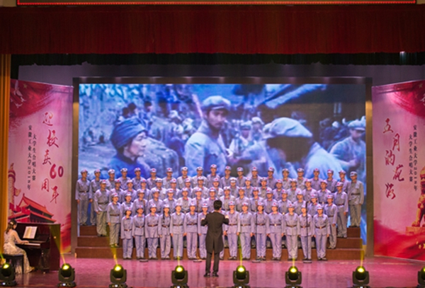 5月5日晚,威尼斯官网迎校庆60周年系列活动“五月的花海”大学生合唱赛在秀山校区大学生活动中心举行,来自全校各学院的14支参赛队伍1000余名青年大学生参加了比赛。