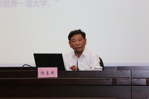 刘新跃在总结讲话中对杨善林的精彩报告表示感谢。他指出,报告主题鲜明,内涵丰富,重点突出,既有实践操作层面的力度,又有理论、理性层面的深度,具有很强的针对性和现实指导性。他要求与会人员在贯彻会议精神中提高新认识,各学院要通过全院教师大会的形式,各相关单位、部门要采用学习会的形式,迅速传达贯彻杨院士的报告精神,结合年初务虚会、一流学科建设推进会等会议精神,重点在学有所思、学有所悟、学而践行、行之有效等方面下功夫、见实效,不断提升全校上下推进一流学科建设的思想自觉和行动自觉。关键是要结合报告思想对国务院关于双一流建设总体方案学深悟透,坚定信心,以“咬定青山不放松”的执着精神对待工作;要在直面差距中寻求新突破,在认真总结上半年工作的过程中,突出梳理一下自己为学校一流学科建设做的工作,还存在哪些差距、短板和不足,下一步如何有新作为。以杨院士报告精神为指引,认真按照双一流建设的内涵要求和学校一流学科建设方案的要求,采取有效措施,进一步补短板、增动力,铆足劲、加油干,力争学校一流学科建设取得新的突破;要在追求卓越中展现新作为,以“一流”为价值导向,进一步拓展一流的视野,培养一流的情怀,扛起一流的担当,坚持一流的追求,让“一流”成为引领学校内涵式发展的标杆,努力在立德树人、科学研究、服务社会、文化传承创新、国际交流合作等方面勇创一流,展现出新的作为,不断提升学校的综合实力、综合竞争力和影响力,全面建成地方特色高水平大学,以优异的工作业绩向建校60周年献礼。