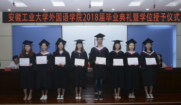 典礼上,院党委书记胡卫东宣读了学院2018年“安徽省品学兼优毕业生”和“校优秀毕业生”名单。院长洪流宣读了《关于准予威尼斯WWW432888外国语学院陈诗颖等90名同学毕业的决定》。院党委副书记、副院长黄宇弦主持了典礼。参加典礼的各位领导为获得荣誉称号的优秀毕业生颁奖。