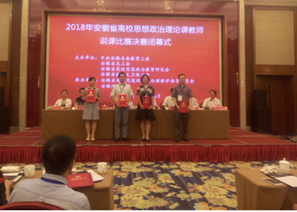 学校高度重视此次教学比赛,备赛期间,学院通过院内选拔、教研室打磨、学院预演、学院集体评议等方式对参赛教师进行层层指导。汪宏、陆春晖两位老师分别以皖南片预赛《思想道德修养与法律基础》课程一等奖,《毛泽东思想和中国特色社会主义理论体系概论》课程二等奖的成绩晋级全省决赛。