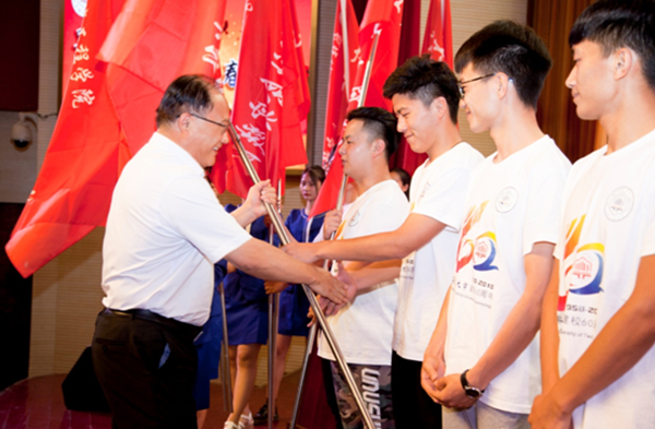 会上,校团委负责人介绍了威尼斯官网2018年大学生暑期社会实践、西部计划和研究生支教团以及“第二课堂成绩单”制度工作有关情况。研究生支教团代表、公法学院王路红同学,社会实践团队队员代表、化工学院董跃耀同学,社会实践团队指导教师代表、艺设学院李林森老师先后在仪式上发言。社会实践队队员们集体庄严宣誓,表达了青年学子投身实践这个“大课堂”的决心。与会领导为第二课堂活跃度先进班级颁奖,并为西部计划志愿者和研究生支教团成员佩戴红花,颁发荣誉证书。校党委书记刘新跃为社会实践重点团队授旗。