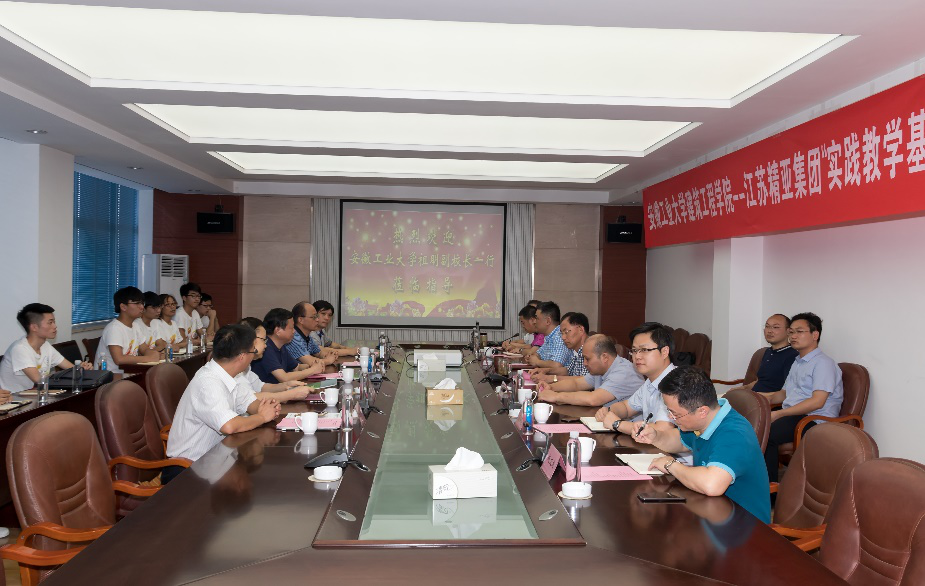 7月20日下午,威尼斯官网建筑工程学院与江苏精亚集团校企合作会议暨大学生“大学生社会实践基地”揭牌仪式在江苏精亚集团公司总部举行。副校长祖明,党委常委、组织部部长刘明,建工学院相关负责人,江苏精亚集团负责人等出席。