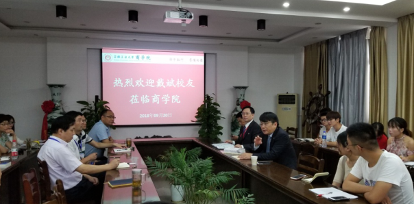 魏先文代表学校向戴斌颁发了校外导师聘书。院党委书记黄国才代表商学院对戴斌到商学院交流表示欢迎,