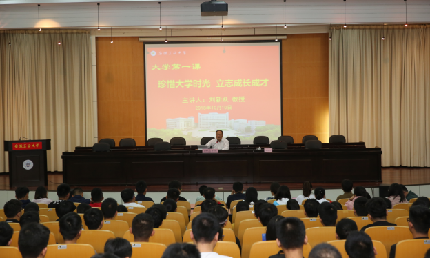为帮助2018级新生更好适应大学学习、生活,明确时代责任、争做时代新人,10月10日下午,校党委书记刘新跃教授以《珍惜大学时光 立志成长成才》为题为三百余名2018级新生代表开讲“大学第一课”。全体新生辅导员参会聆听。学生工作部部长姚敏主持了报告会。
