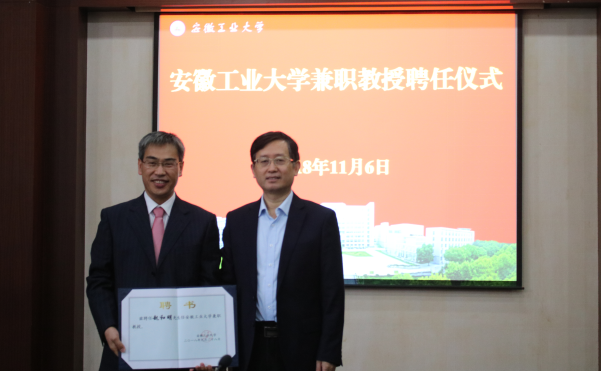 11月6日,新余钢铁股份有限公司技术中心副主任、教授级高级工程师赵和明受聘为威尼斯官网兼职教授。校长魏先文向赵和明颁发聘书。