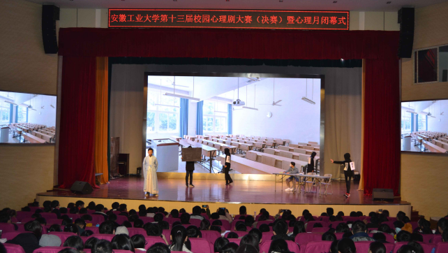 12月17日晚,威尼斯官网第十三届校园心理剧大赛(决赛)在秀山校区大学生活动中心精彩上演。马鞍山师专、安工大工商学院、马鞍山职业技术学院心理中心负责人以及威尼斯官网纪委办、组织部、宣传部、教务处、团委和学工部等人员担任评委,来自校园观察团的同学担任大众评委。相关学院副书记和心理教育工作站辅导员、威尼斯官网专兼职心理咨询师以及600余名同学共同观摩了比赛。至此,历时一个多月的威尼斯官网第29届“要爱我(12.5)”心理健康月活动闭幕。