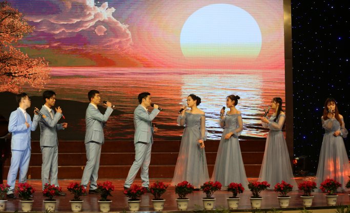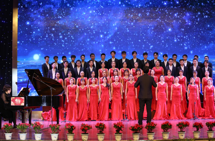 马鞍山市文联主席、校大学生艺术教育中心艺术顾问吴大巢老师和马鞍市著名歌唱家赵西鳌、刘松、张朝晖的“3+1”组合用歌曲《举杯吧朋友》《党啊亲爱的妈妈》,表达了对中国共产党的感恩和对祖国的美好祝福。国际教育学院留学生的外国歌曲联唱为工大的校园文化增添了一道亮丽的风景线。西洋乐器合奏带来的是华丽而高贵动人的探戈名曲《一步之遥》。吴文兵老师的男声独唱《两地曲》和校艺术教育中心外聘艺术指导、赵玉艳老师的女声独唱《美丽中国》讴歌了家国天下的高尚情怀,展示了美丽中国的时代画卷。混声合唱《listen to the wind》《彩虹 》《光荣与梦想》释放了青春的活力、放飞了年轻的梦想。整场音乐会在气势磅礴、凝心聚力的《再一次出发》中落下帷幕。